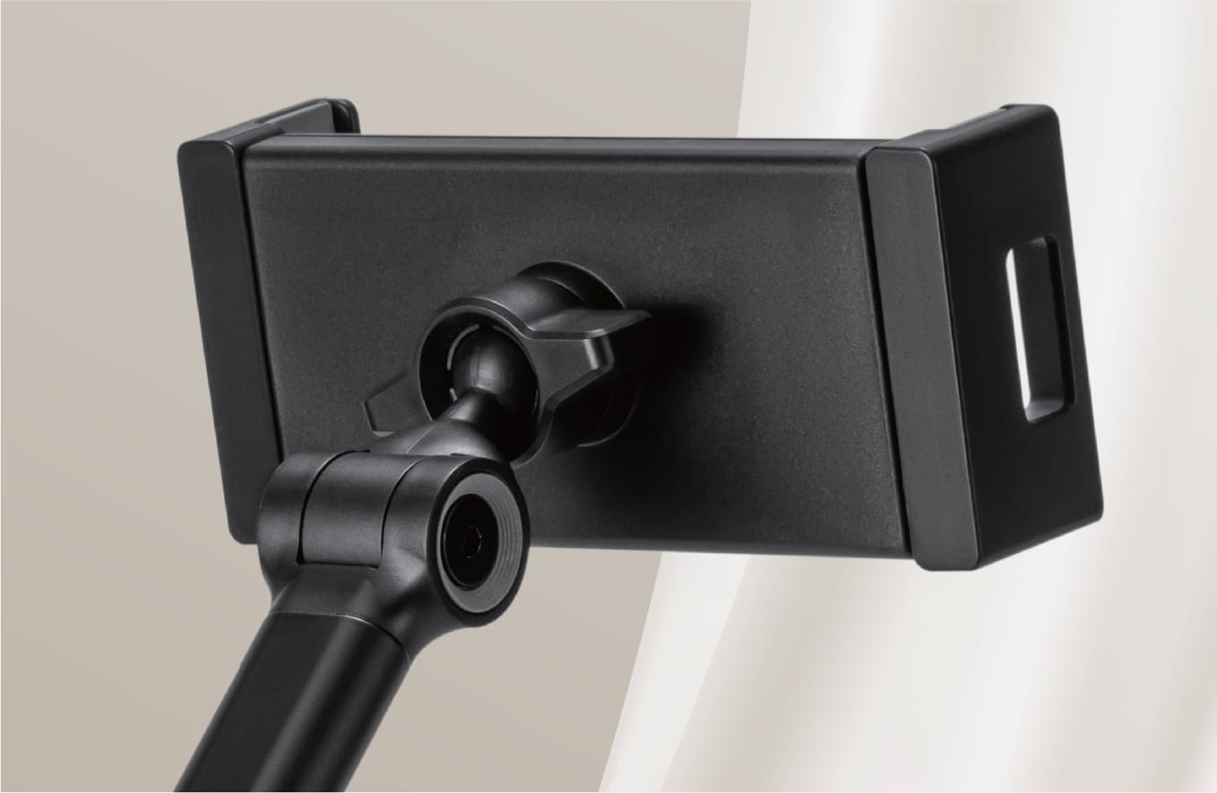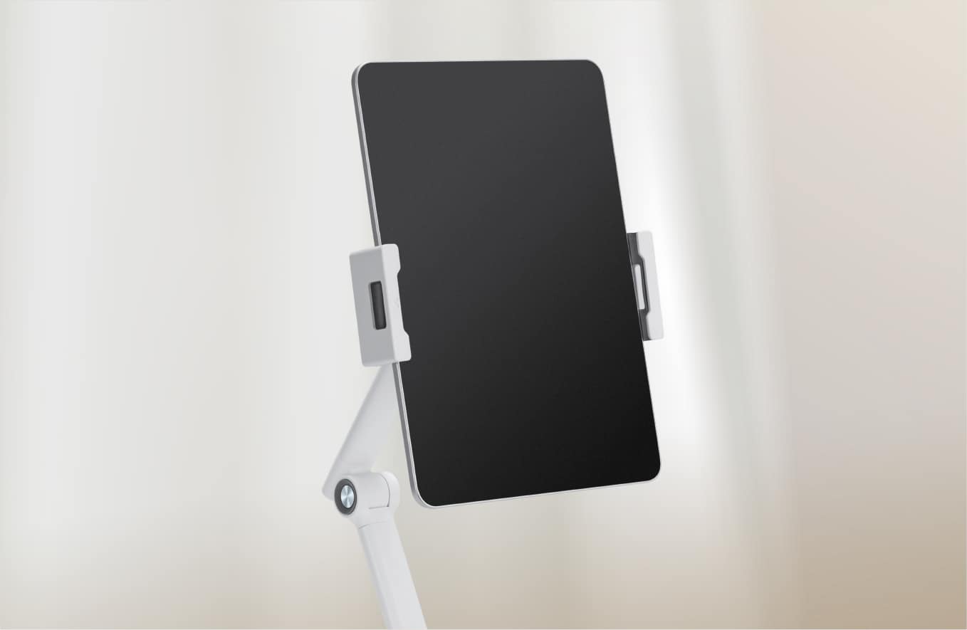 Tablet & Smartphone Stand Featuring a simple, minimalist design, this stand is made entirely of durable steel and is robust. It offers adjustable height options to suit various uses. Available in two basic colors, white and black, it easily complements tablets and smartphones of any color.