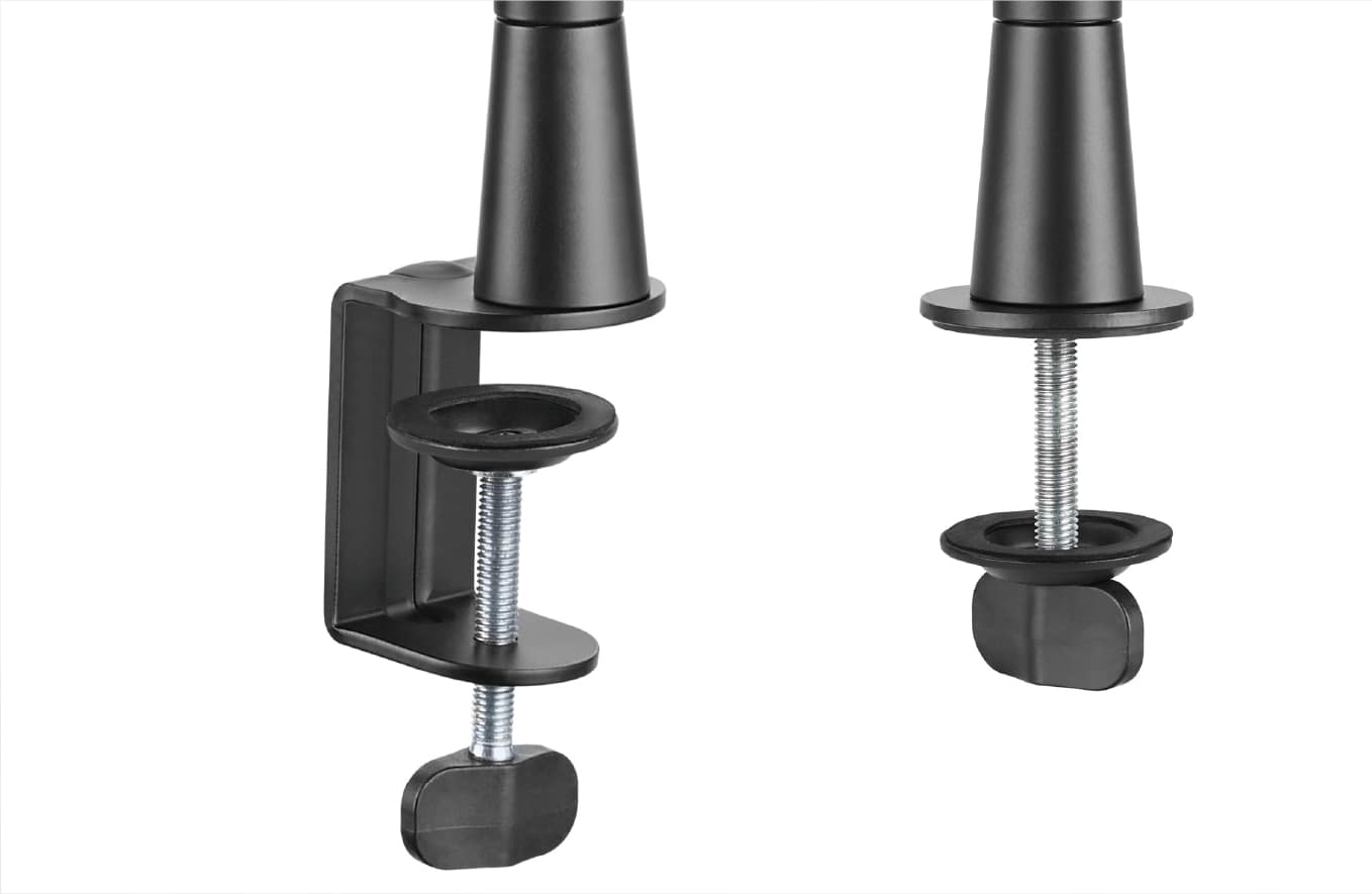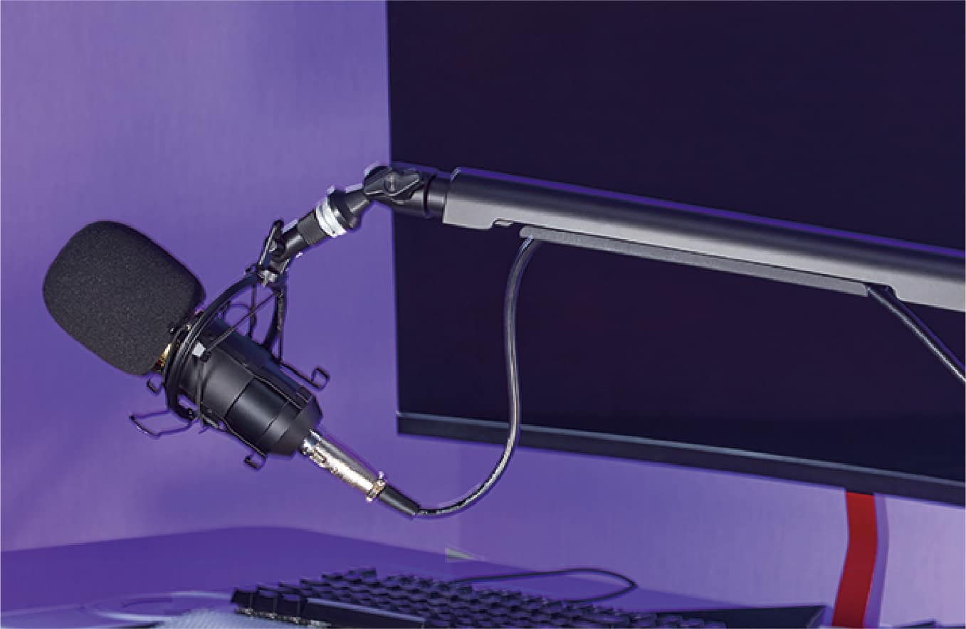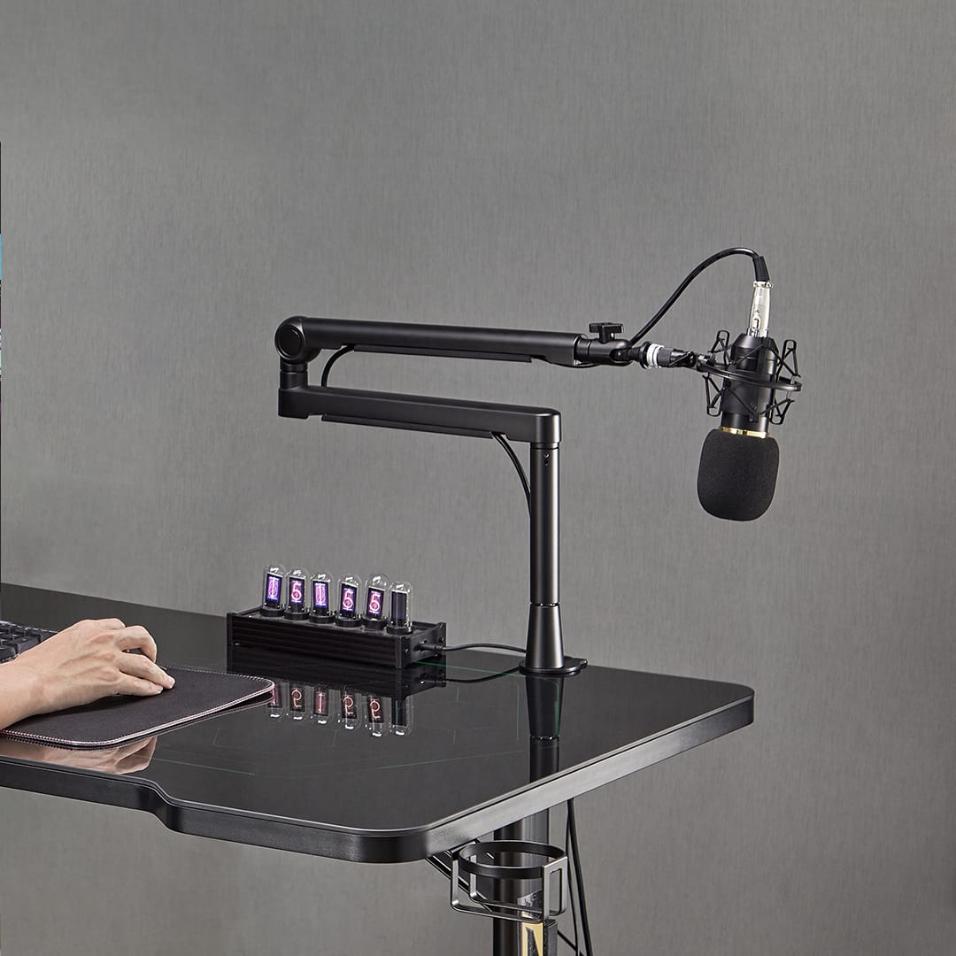 LIV Professional Microphone Arm Strong and durable yet lightweight, it allows for smooth and easy adjustment. It supports two installation methods: clamp and grommet mount. The base and clamp are padded with foam to prevent scratches during use and minimize vibrations that may affect sound quality. It comes with an adapter that can be used with almost any microphone model.