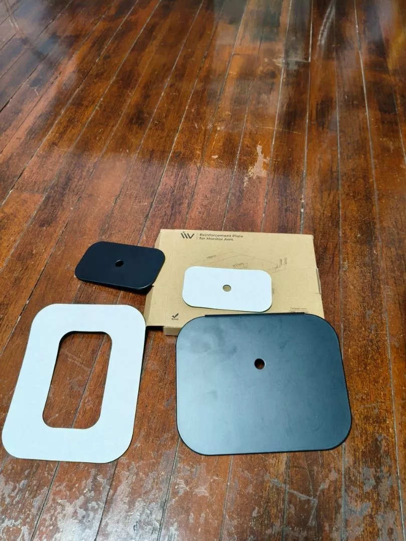 Monitor Arm Reinforcement Plate แผ่นยึดใช้เสริมสร้างความมั่นคงในการในการยึดมอนิเตอร์อาร์มเข้ากับโต๊ะให้แน่นหนามากขึ้น ออกแบบให้แผ่นยึดมีขนาดใหญ่เพื่อช่วยในการกระจายน้ำหนักในการหนีบ สามารถป้องกันความเสียหาย และการแตกหักที่จะเกิดขึ้นกับท็อปโต๊ะ ใต้แผ่นยึดมียางรองป้องกันลื่น ช่วยป้องกันรอยขีดข่วนต่าง ๆ ที่จะเกิดขึ้นจากการหนีบมอนิเตอร์อาร์ม