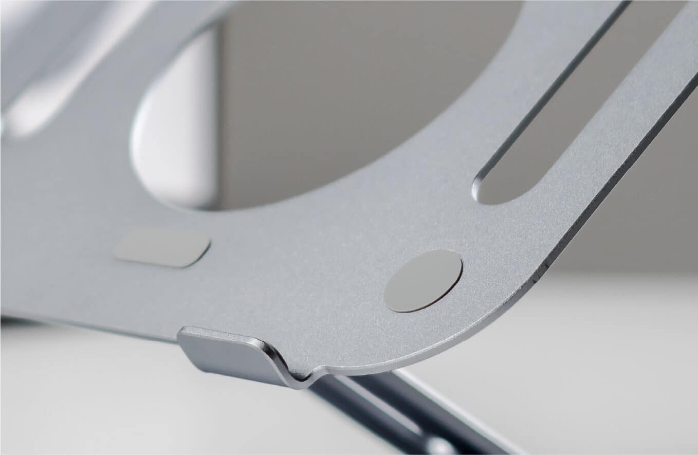 ฐานวาง Laptop/Tablet ปรับระดับ หมุนได้ 360 องศา ที่สามารถปรับเปลี่ยนความสูง – ต่ำ ให้เข้ากับท่านั่ง/ยืนทำงานได้อย่างอิสระตามหลักสรีรศาสตร์ และหมุนได้รอบทิศทาง เปลี่ยนมุมมองการรับชมได้อย่างง่ายดาย วัสดุ อลูมิเนียมอัลลอย เกรดพรีเมี่ยม ออกแบบโดยใช้หลักการยศาสตร์ ข้อต่อถูกออกแบบด้วยกลไกลประกอบแบบแรงดันสูง ทนทาน เสถียร และมั่นคง