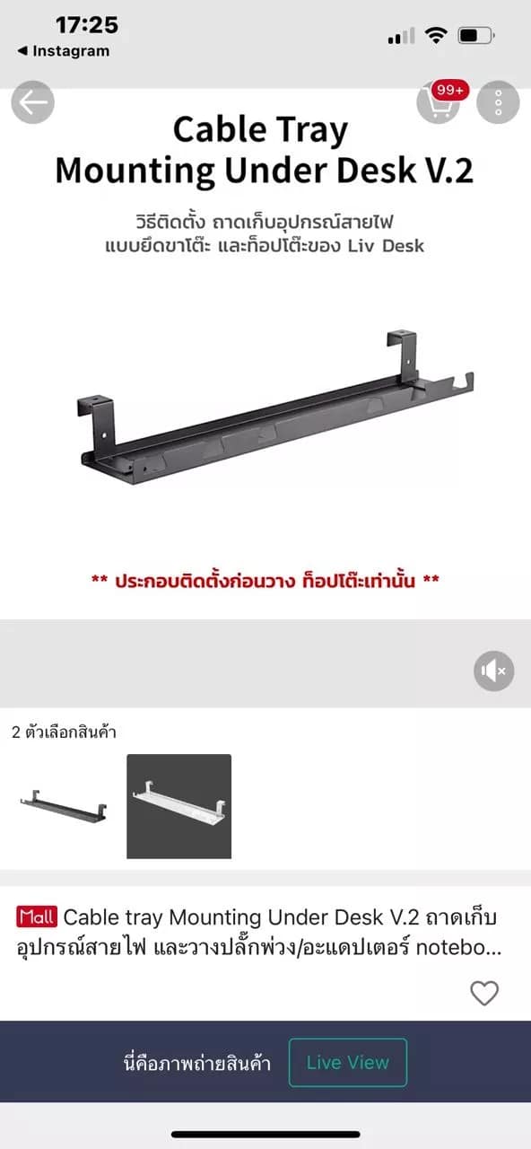 ถาดเก็บอุปกรณ์สายไฟ Cable Tray Mounting Under Desk V.2 จาก 39 รีวิว