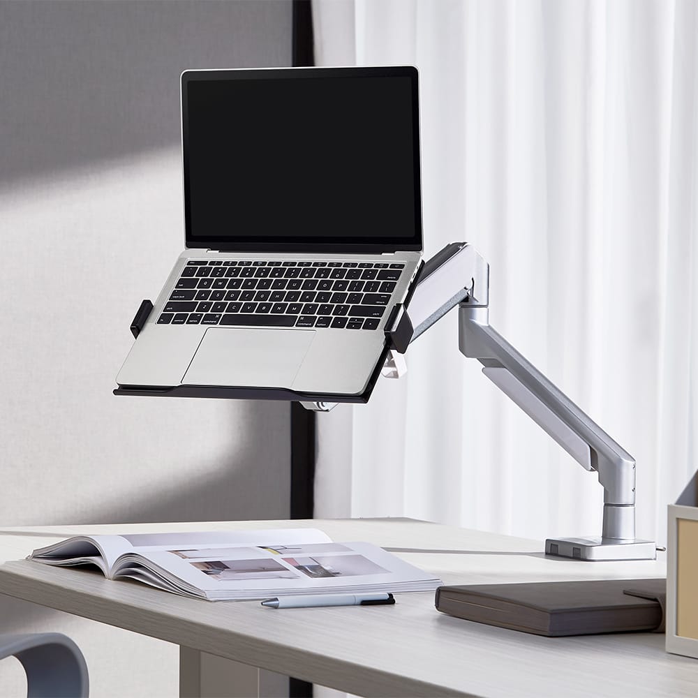 แท่นวาง Macbook/Laptop สำหรับแขนจับจอ Liv วัสดุอลูมิเนียม น้ำหนักเบา ทนทาน ช่วยจัดให้แล็ปท็อปอยู่ในตำแหน่งที่เหมาะสม เพื่อการมองที่ถูกหลัก Ergonomics