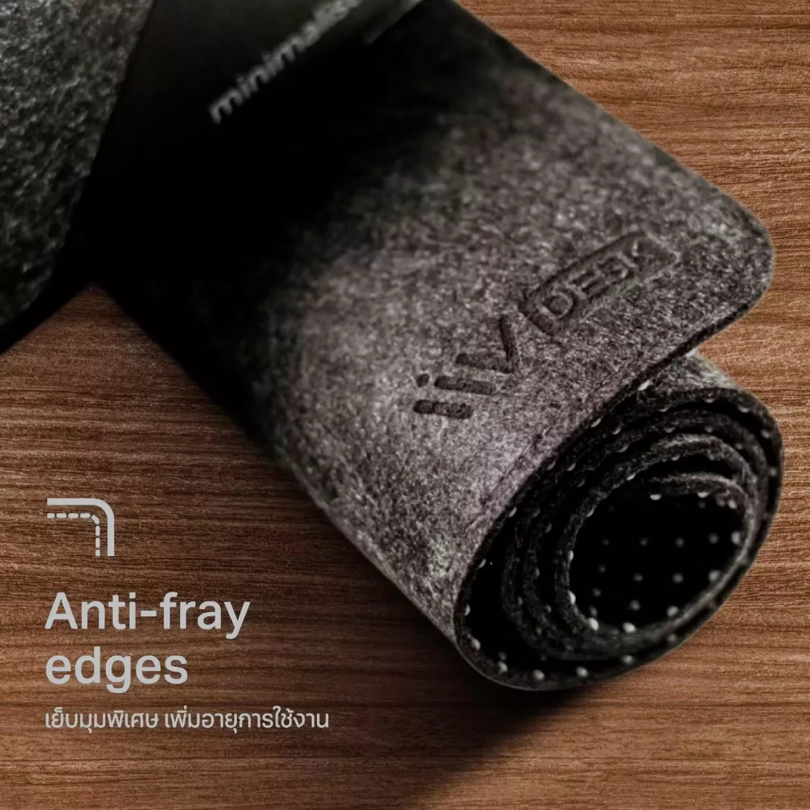 แผ่นรองเมาส์ขนาดใหญ่ LIV Desk Pad แผ่นรองเมาส์สีดำเทาขนาดใหญ่ ช่วยเปลี่ยนโต๊ะทำงานของคุณให้ดูดีมินิมอล พรีเมี่ยม หรูหรา มากขึ้นอีกระดับ ทำจากวัสดุผ้าสักหลาดระดับพรีเมียม เนื้อผ้านุ่มสบายไหลลื่นทุกสัมผัส เย็บมุมพิเศษ ป้องกันการหลุดลุ่ย เพิ่มอายุการใช้งาน ป้องกันการเลื่อนด้วยปุ่มยางกันลื่นใต้แผ่นรองเมาส์
