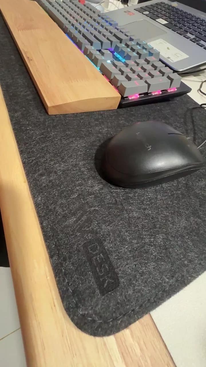 แผ่นรองเมาส์สีดำเทาขนาดใหญ่ ช่วยเปลี่ยนโต๊ะทำงานของคุณให้ดูดี มินิมอล พรีเมี่ยม หรูหรามากขึ้นอีกระดับ ทำจากวัสดุผ้าสักหลาดระดับพรีเมียม เนื้อผ้านุ่มสบายไหลลื่นทุกสัมผัส