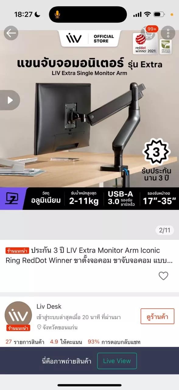แขนจับจอเดี่ยว LIV Extra Single Monitor Arm – Iconic Ring จาก 18 รีวิว