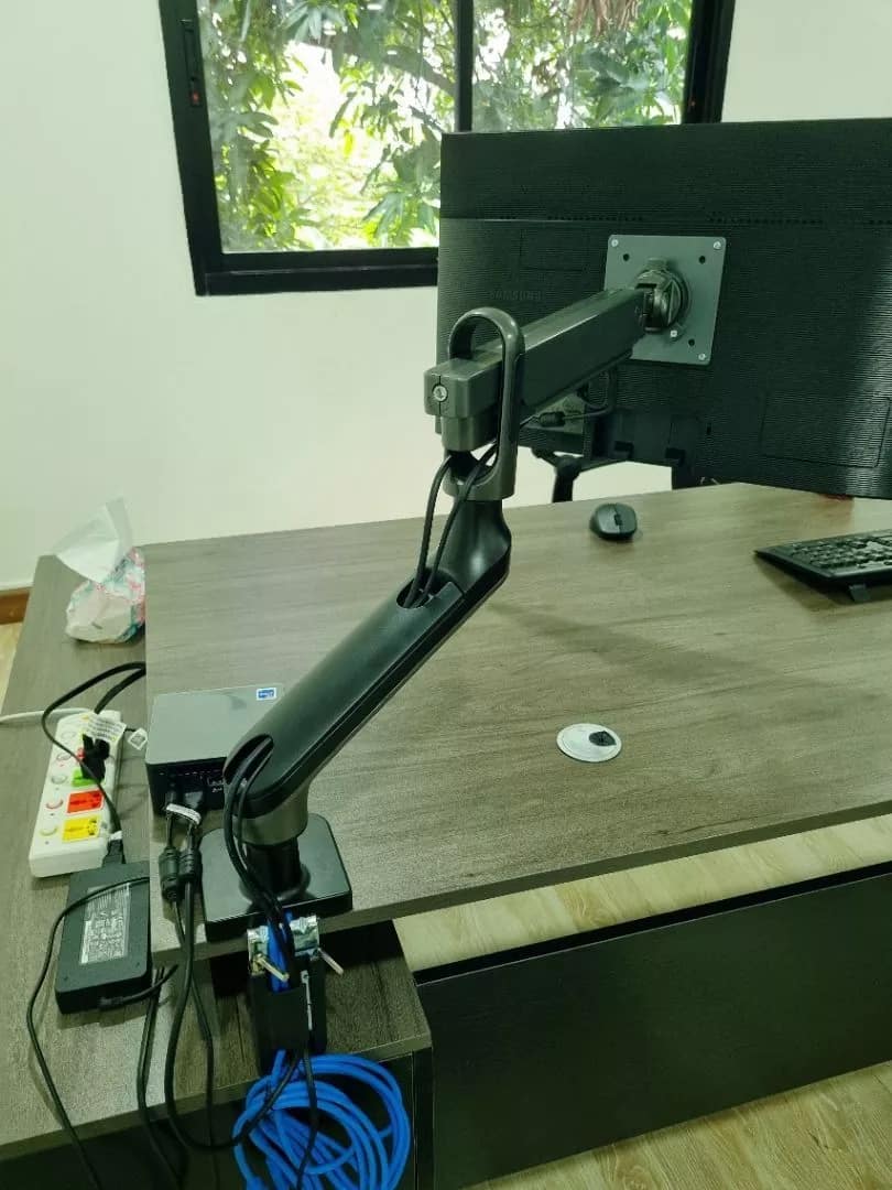 แขนจับจอมอนิเตอร์แบบเดี่ยว วัสดุอะลูมิเนียมเกรดพรีเมี่ยม จุดหมุนแบบวงแหวนอันเป็นเอกลักษณ์ เคลื่อนไหวลื่นไหล ไม่มีสะดุดรองรับจอมอนิเตอร์ มีช่องจัดเก็บสายไฟถึง 2 ช่วง ไม่ให้สายไฟรกเกะกะ การรันตีความพรีเมียมด้วยรางวัล RedDot Winner/Golden Pin Design Award