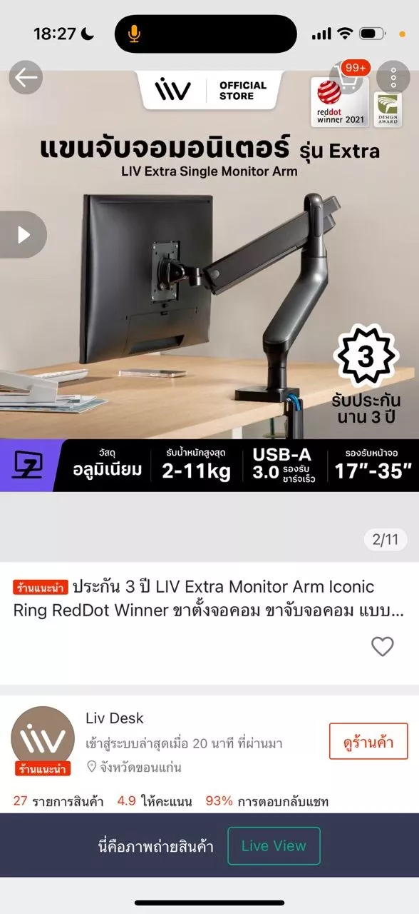 แขนจับจอเดี่ยว LIV Extra Single Monitor Arm – Iconic Ring จาก 13 รีวิว